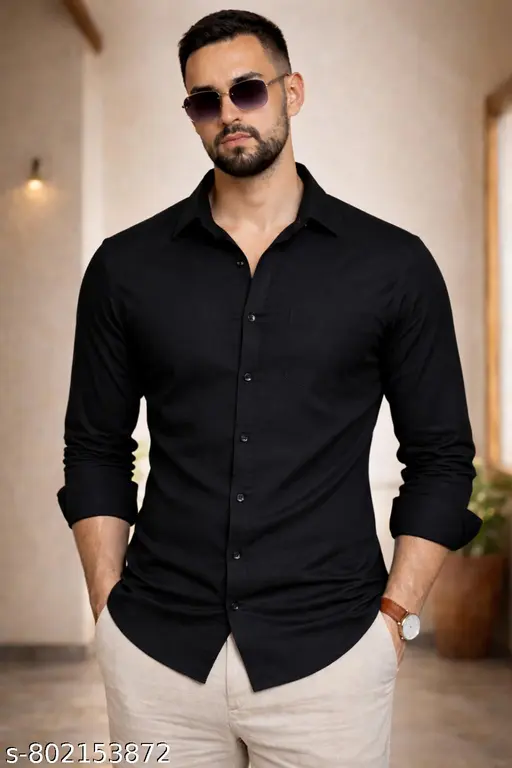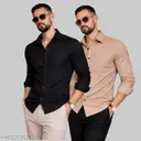 Men Solid Shirt Combo Pack of 2 (Black + Colour Option) | Regular Fit Full Sleeve Plain Casual Shirts for Men