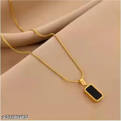 Product DetailsName : Black Onyx-Inspired Rectangle Pendant NecklaceMaterial : Stainless SteelPlating : Gold PlatedClosure : S-HookSize : SType : Chain With PendantAdd On : ChainNet Quantity (N) : 1Make a bold yet refined statement with this gold-plated rectangle pendant necklace, featuring a sleek black enamel inlay that exudes modern elegance. Crafted for those who appreciate design with a touch of luxury, this piece adds sophistication to both casual and formal attire. The smooth, flat rectangular charm hangs from a polished gold-tone chain, offering a timeless and versatile accessory suitable for daily wear or special occasions. Whether worn solo or layered, it’s a standout addition to any jewelry collection.Country of Origin : IndiaMore Information