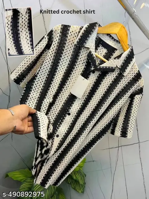 Trendy Modern Mens Pure Crochet Cotton Black Shirts so buy now guys..