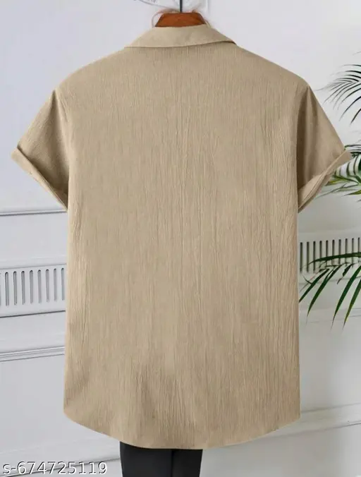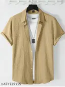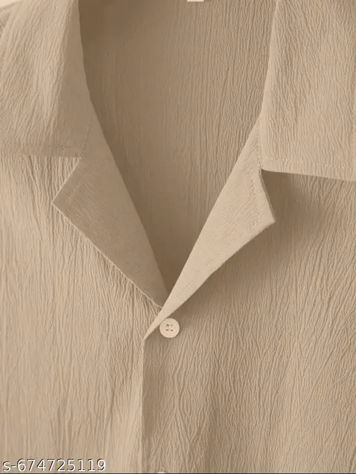 Menβs Cream Casual Half Sleeve Shirt | Solid Stylish Summer Wear Shirt for Men